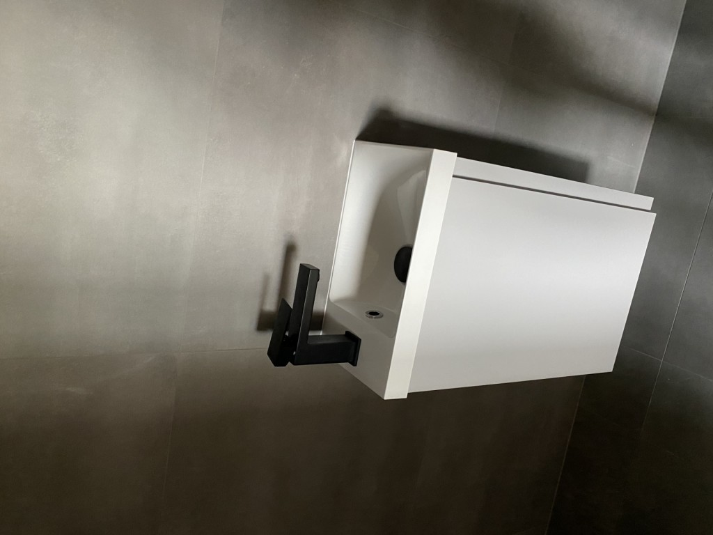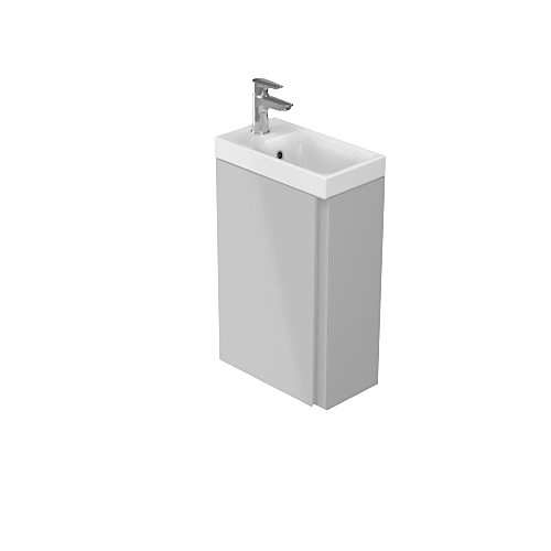 Umývadlo MODUO SLIM určená do malých kúpeľní s univerzálnym otváraním dvierok pravá / ľavá, je menšia hĺbky než štandardné skrinky a je príkladom moderného kúpeľňového nábytku. Predná časť dvierok so skrytým úchytom a telo skrinky je pokryté lesklým šedým lakom. Dvierka sú vybavené tichým zatváracím systémom. Umývadlo možno kombinovať malým umývadlom radi MODUO SLIM.