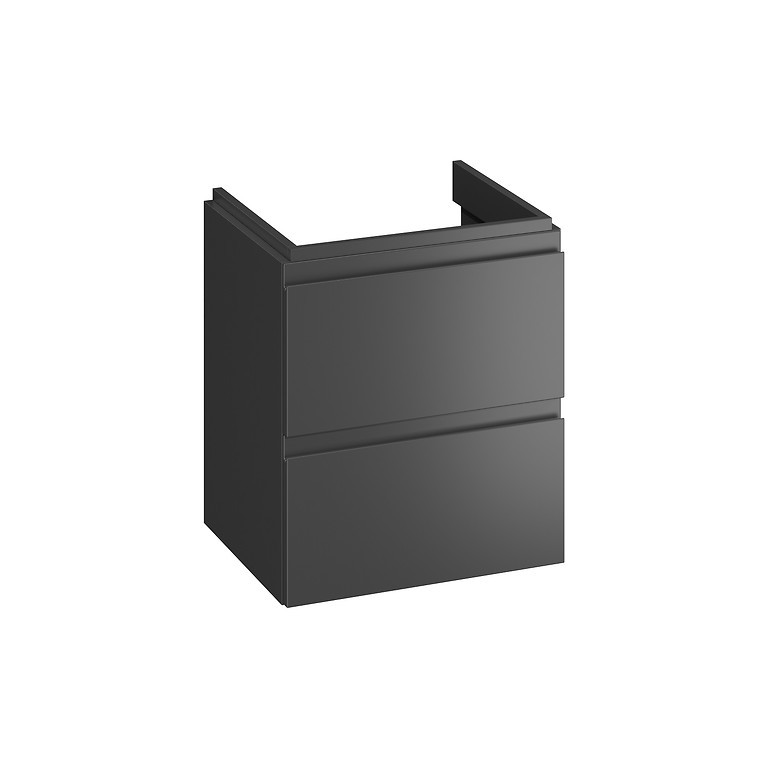 Umývadlová skrinka MODUO 50 s jednoduchým moderným tvarom je vyrobená z lakovanej nábytkovej dosky antracitovej farby s matným povrchom. Skrinky série MODUO majú pohodlné frézované úchyty, ktoré vytvárajú dekoratívne prvky a umožňujú jednoduché otváranie a zatváranie dverí alebo šuplíkov. Zásuvky sú vybavené systémom mäkkého zatvárania. Skrinka je určená pre montáž s nábytkovým umývadlom MODUO 50.