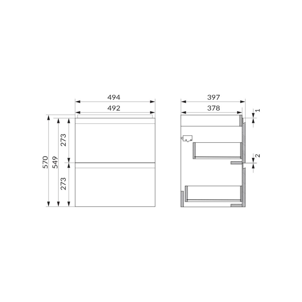 Umývadlová skrinka MODUO s moderným, minimalistickým tvarom je vyrobená z kašmírovej lakovanej dosky s matnou povrchovou úpravou. Tento model je vybavený pohodlnými frézovanými úchytmi a systémom tlmeného dovierania a je prispôsobený na montáž s nábytkovým umývadlom MODUO 50. Predáva sa vo verzii pre svojpomocnú montáž. Táto skrinka má dve plné zásuvky, odporúčame použiť priestorovo úsporný sifón.