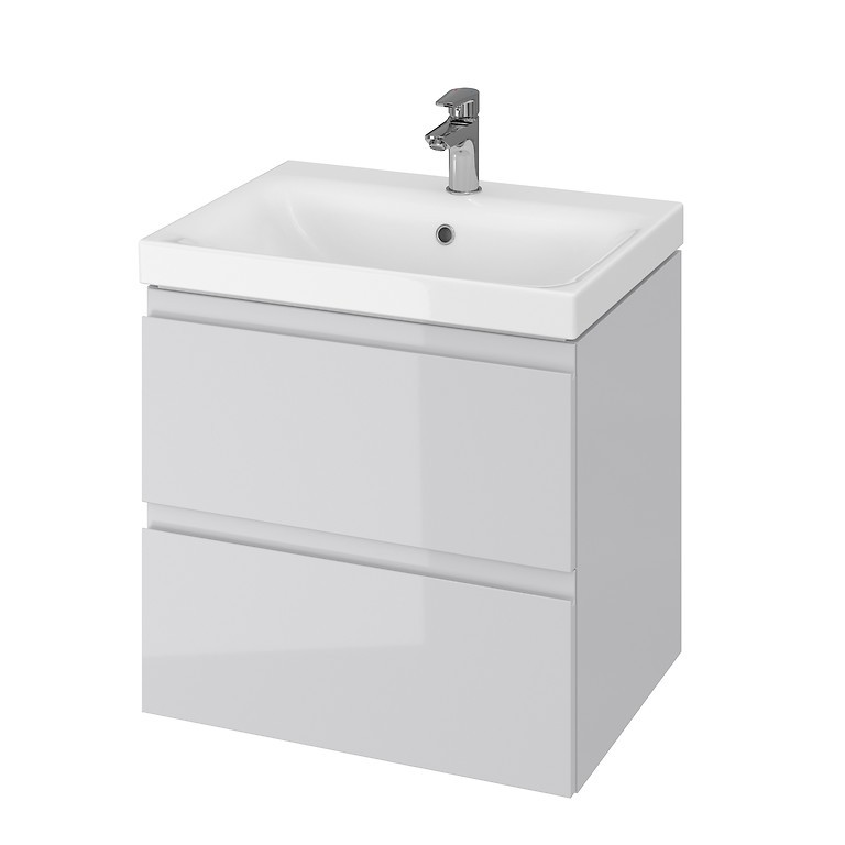 Umývadlo MODUO je príkladom moderného kúpeľňového nábytku. Predné časti zásuviek so skrytými úchytkami a telo skrinky je pokryté lesklým šedým lakom. Zásuvky sú vybavené tichým zatváracím systémom. Umývadlo možno kombinovať umývadlami radi MODUO. Tiež pasujú umývadlá radu COMO, CREA, CITY a COLOUR.
