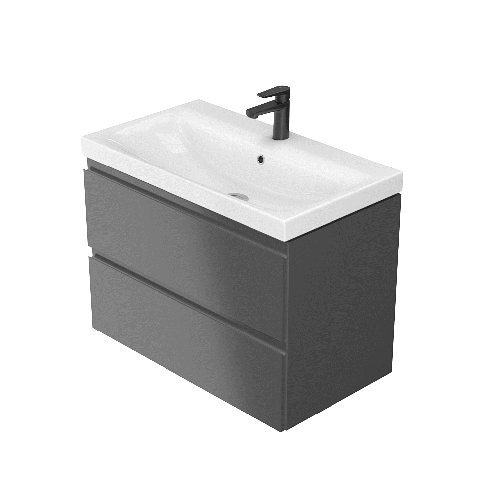 Umývadlová skrinka MODUO 80 s jednoduchým moderným tvarom je vyrobená z lakovanej nábytkovej dosky antracitovej farby s matným povrchom. Skrinky série MODUO majú pohodlné frézované úchyty, ktoré vytvárajú dekoratívne prvky a umožňujú jednoduché otváranie a zatváranie dverí alebo šuplíkov. Zásuvky sú vybavené systémom mäkkého zatvárania. Skrinka je určená pre montáž s nábytkovým umývadlom MODUO 80.