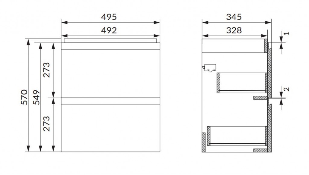 TIP: V prípade, že budete skrinku kombinovať so zápustným umývadlom je potrebné upraviť vrchný šuplík, aby bol dostatočný priestor pre sifón. Je potrebné objednať montážny prvok - S599-0182