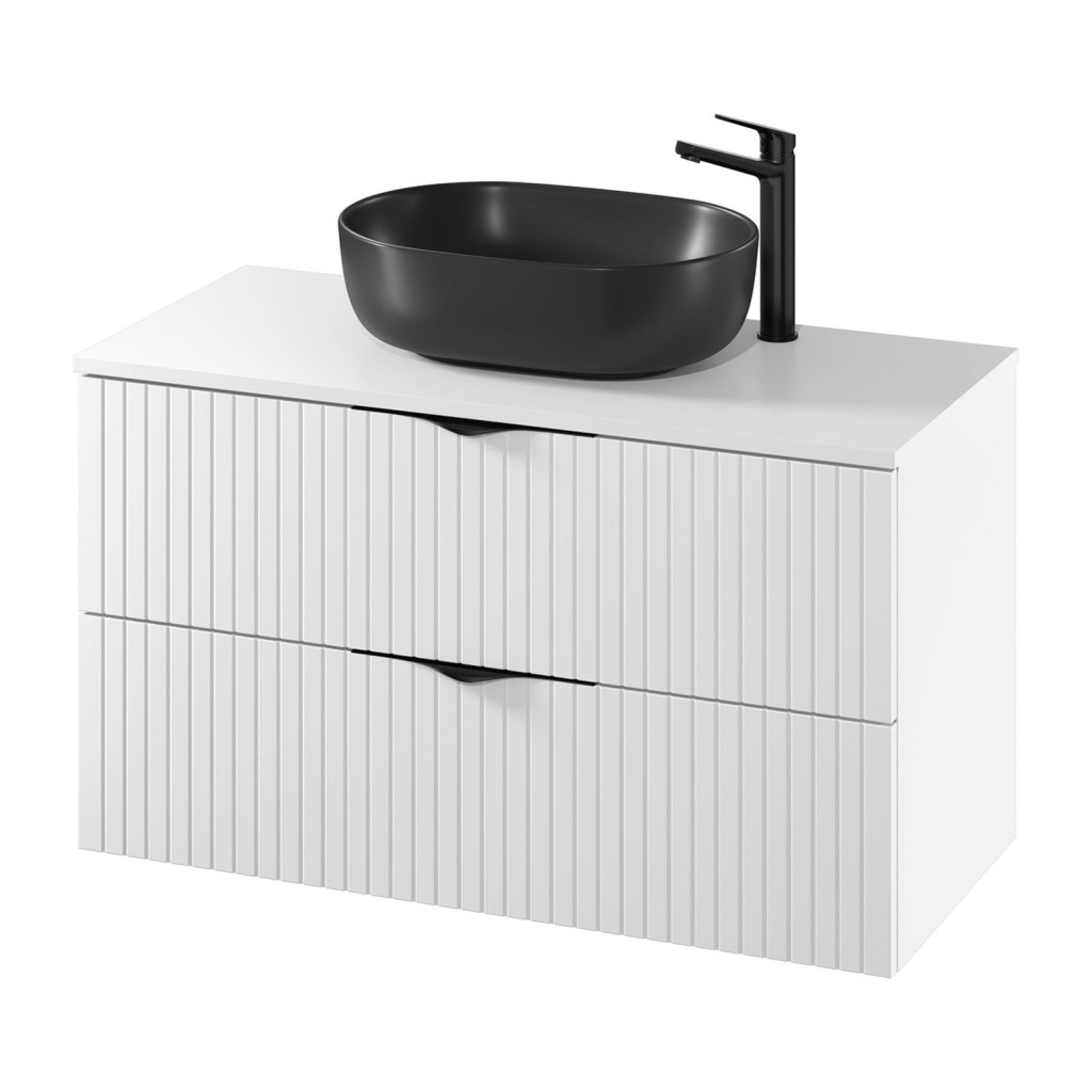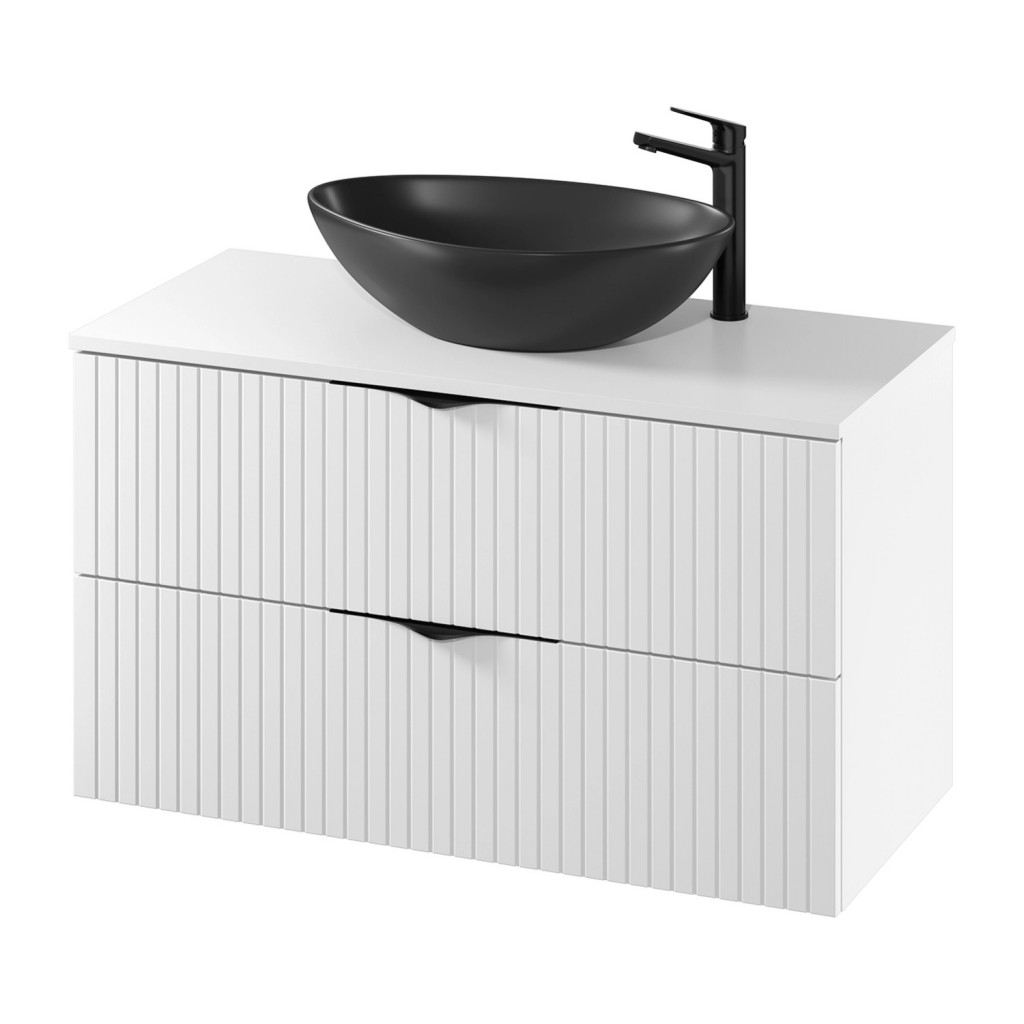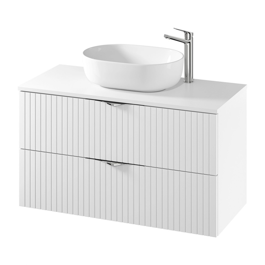 K tejto modulovej nábytkovej zostave sa hodí umývadlo na deku so stojanovou batériou vysokej verzie , pretože sa umiestni na dosku vedľa umývadla. Vhodné je potom doplniť umývadlovým výpustom a nábytkovým úsporným sifónom , ktorý je navrhnutý tak, aby šetril miesto pod umývadlom .