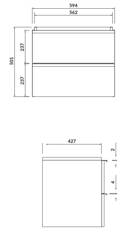 závesná elegantný umývadlová skrinka VIRGO vyrobená z drevotrieskovej dosky vo farbe sivého duba. Dve praktické zásuvky sú vybavené systémom "soft-close". Vo vnútri hornej zásuvky je výrez pre sifón s krytom a spodnej časti zásuviek sú pokryté jemnou šedou ľanovou štruktúrou.