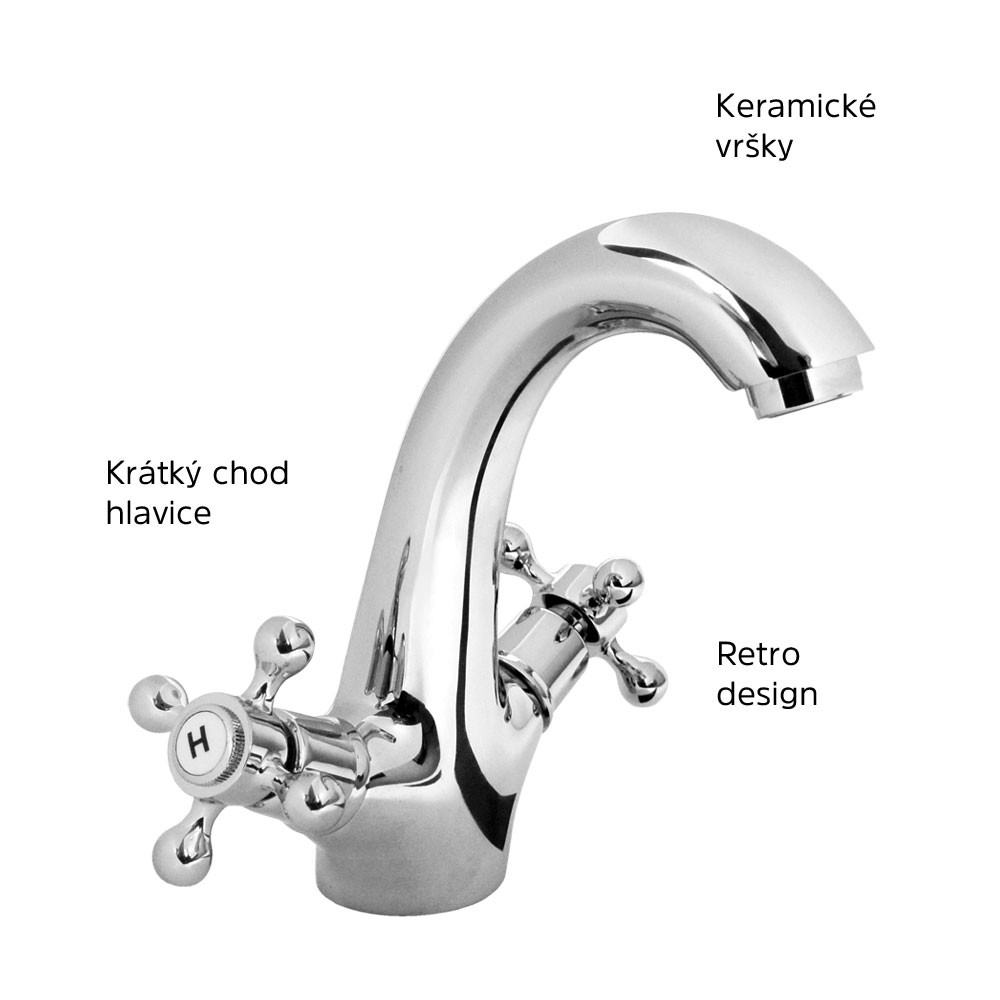 Táto umývadlová stojanková batéria, patrí do série dvojručkových vodovodných batérií Retro Viktorie, ktorá sa vyznačuje zaujímavým dizajnom a masívnym prevedením, vr. príslušenstva. Séria Retro Viktorie vás ohromí svojím elegantným retro vzhľadom, dlhou životnosťou a kvalitnou povrchovou úpravou. Batéria má krátky chod ovládacej hlavice, k plnému otvoreniu stačí otočenie o 90 °.