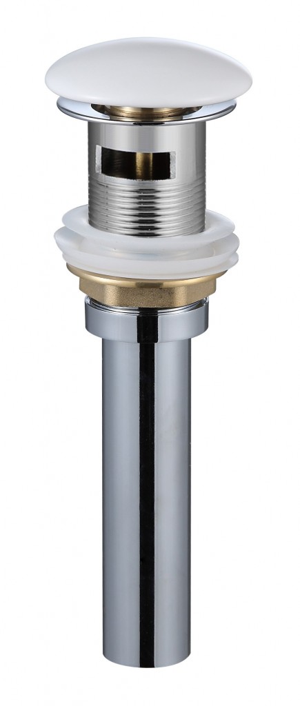 Umývadlová výpust s click-clack systémom. Výpust je s bielou keramickou zátkou a je určená pre umývadlá s prepadom.