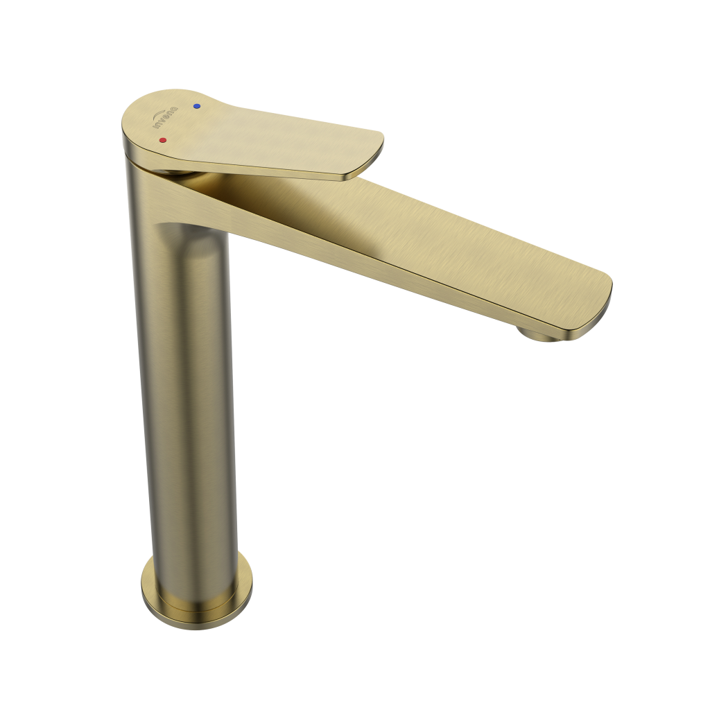 Vysoká umývadlová batéria ALONIA v kartáčovanej zlatej farbe je vynikajúcou voľbou pre tých, ktorí si vo svojej kúpeľni cenia eleganciu a moderný štýl. Páková, voľne stojaca konštrukcia poskytuje pohodlné ovládanie vody, zatiaľ čo 25mm keramická batéria zaisťuje plynulé a presné nastavenie teploty a dlhodobú spoľahlivosť. Plastový perlátor účinne znižuje spotrebu vody, čím šetrí ako pri každodennom používaní, tak aj náklady na energie. Súprava obsahuje rýchloupínací systém pre jednoduchú inštaláciu a zarážku click-clack pre pohodlné ovládanie. Sada navyše obsahuje dve 3/8" pripojovacie hadice s dĺžkou 40 cm, ktoré zaisťujú plnú kompatibilitu s vašim vodovodným systémom. Batéria ALONIA je dokonalou kombináciou moderného dizajnu, funkčnosti a ekologických riešení.