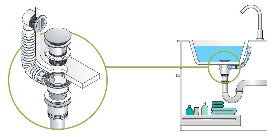 Umyvadlový přepad s odpadním mezikusem pro umyvadla z litého mramoru