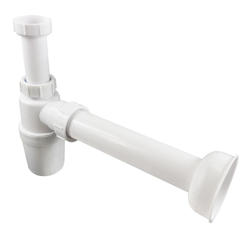 Umývadlový sifón pre optimálne pripojenie na stenu a k umývadlu, s gumovým tesnením. Súčasťou je odpadová rúrka s priemerom 40 mm.