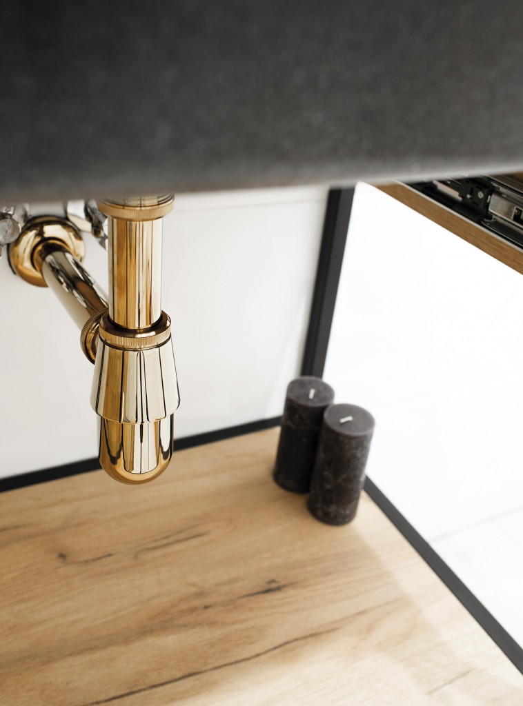 Umývadlové sifóny fľašového typu sa pýšia moderným okrúhlym dizajnom. Sú vyrobené z ocele a nielenže plnia svoju primárnu funkciu, ale slúžia tiež ako atraktívny dekoratívny prvok. Sifón obsahuje všetky diely potrebné na inštaláciu alebo výmenu, takže inštalácia je rýchla a jednoduchá bez pomoci profesionálneho inštalatéra. Hladký vnútorný povrch zabraňuje hromadeniu nečistôt alebo uvoľňovaniu nepríjemných pachov. Sifón je určený pre umývadlá a bidety. Je možné ho namontovať do skrinky alebo vystaviť. Spolu s ďalšími kúpeľňovými doplnkami vytvorí krásnu atmosféru. K dispozícii v chrómovej, bielej, čiernej, zlatej a ružovo-zlatej povrchovej úprave.