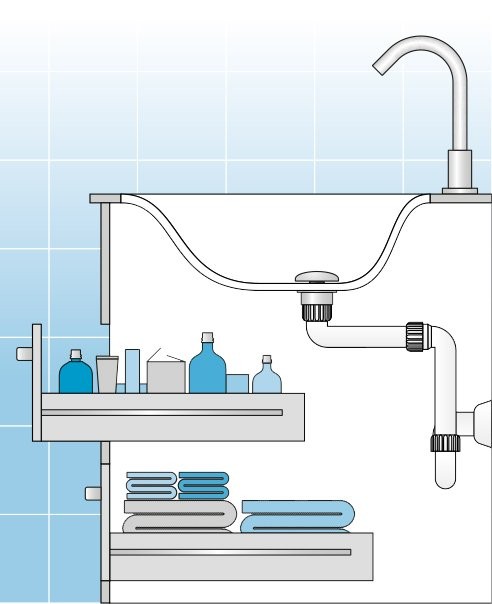 Ide o systém, kde rúrka pod umývadlom odvedie vodu k stene a až tam ju odvádza zvisle dole. Toto riešenie je vhodné napríklad do kúpeľňového nábytku, kedy sifón nebráni využitiu police/zásuvky, pre umývadlá s policou alebo k umývadlám pre telesne handicapovaných.