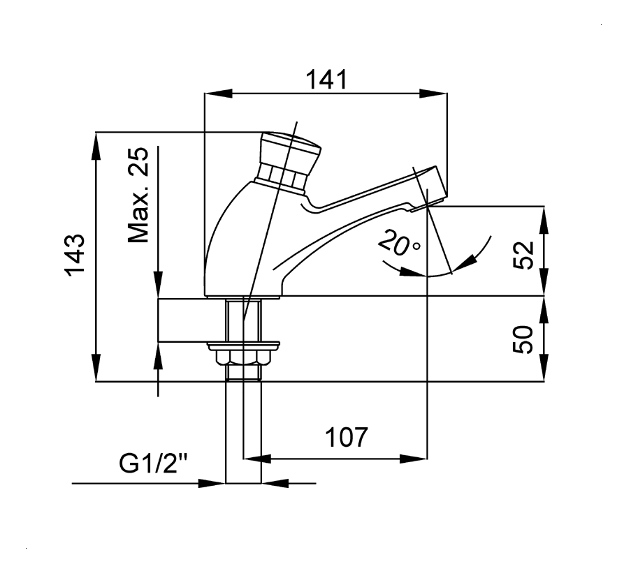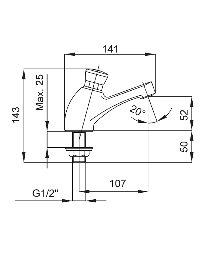Umývadlový ventil pre jednu vodu, samouzatvárací