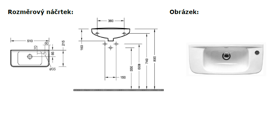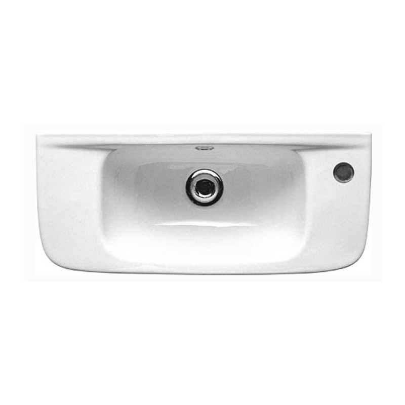 Keramické umývadielko s otvorom na batériu iba na pravej strane a s prepadom. Možnosti inštalácie na zavesenie.