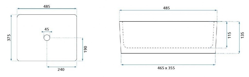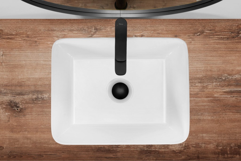 Umývadlo na dosku je široké 48,5 cm a na hĺbku má 37,5 cm, čo je ideálne pre umývadlové skrinky aj užšie kúpeľňové dosky.
