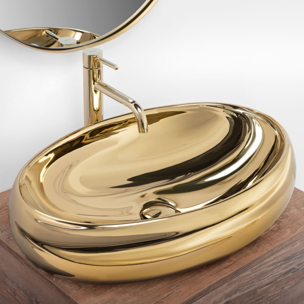 Umývadlo Melania Gold je súčasťou kolekcie umývadiel Melania, ktorá zahŕňa aj mnoho ďalších variantov umývadiel Melania. Vnútorné i vonkajšie škrupiny sú pokryté glazúrou so zlatým povrchom, vďaka čomu umývadlo vyniká nad zvyškom kúpeľne a priťahuje pozornosť každého hosťa. Umývadlo vyzerá perfektne so zástrčkou a Fauci v čiernej i zlatej farbe.