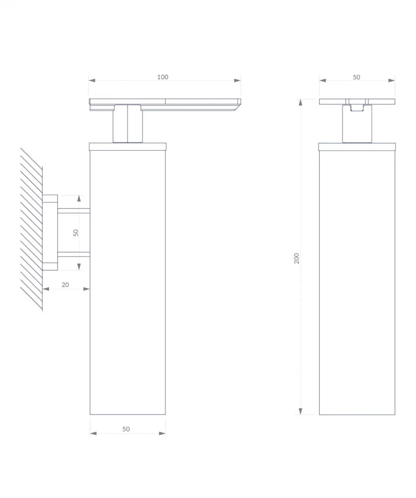 - šírka: 5 cm, výška: 20 cm, vzdialenosť od steny: 13 cm