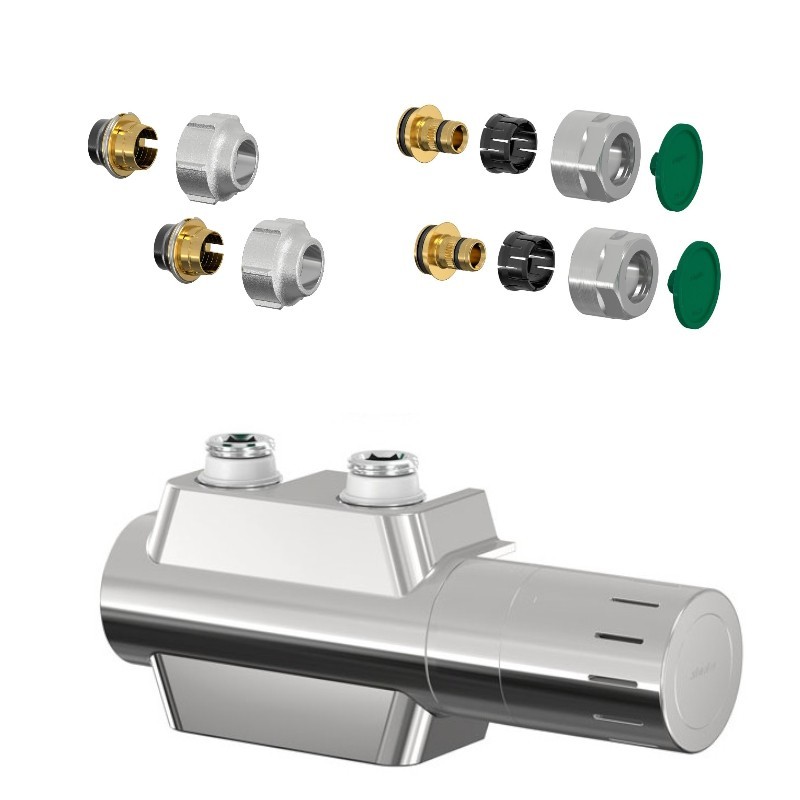Pripojovacia armatúra UNI-SADA s integrovaným termostatickým ventilom pre vykurovacie telesá s vnútorným závitom 1/2" alebo s vonkajším závitom 3/4" Eurokonus. Je vhodná pre kúpeľňové a vykurovacie telesá so stredovým dopojením . Armatúra kombinuje rohový a priamy tvar ventilu a má univerzálne pravé alebo ľavé pripojenie hlavice . Sadu ponúkame v troch farbách (chróm, čierna a biela ). Ventily dodávame vrátane zverného šróbenia na Cu aj na PEX-AL-PEX.