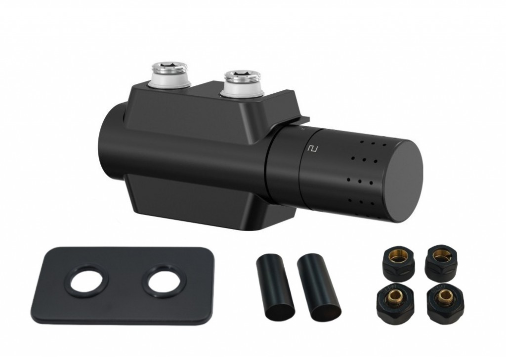 Stredová obojstranná (ľavá aj pravá) termostatická sada UNI vr. 1 krycie rozety a 2 krycích trubičiek (plast) je určená na pripojenie radiátorov na rozvody TÚV s vývodom zo steny aj z podlahy s rozstupom 50mm.