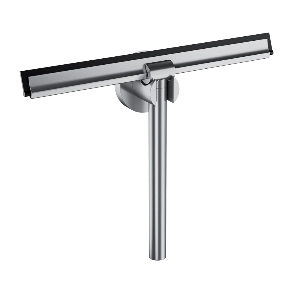 Táto vodná stierka, vyrobená z vysoko kvalitného kovu as mäkkou, flexibilnou pracovnou hranou, presne odstraňuje vodu a usadeniny zo sklenených a dlaždicových povrchov. Ergonomická rukoväť zaisťuje pohodlné používanie a univerzálny dizajn stierky umožňuje jej ľahkú kombináciu s príslušenstvom z ďalších kolekcií OMNIRES.