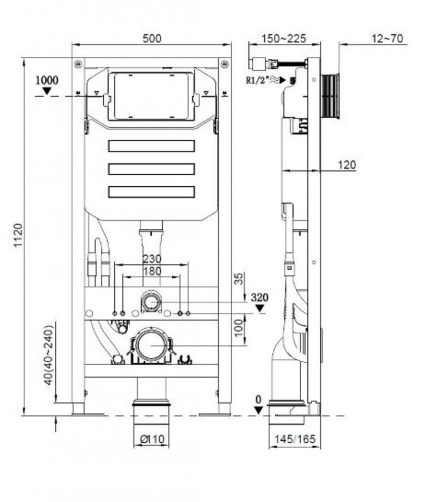 - Rozmery 500 x 1120 x 225 mm
