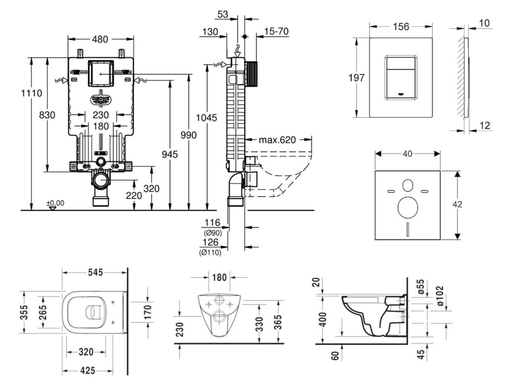 - predstenový inštalačný modul Grohe Uniset (38643001), splachovacie nádrž GD2