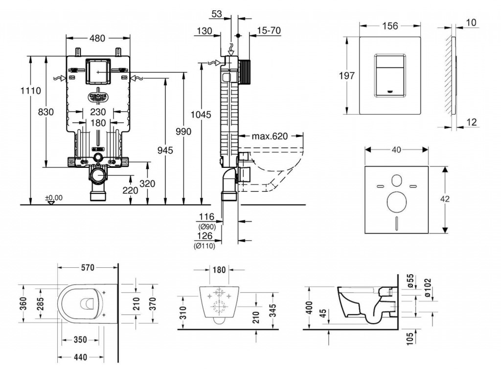 - predstenový inštalačný modul Grohe Uniset (38643001), splachovacie nádrž GD2