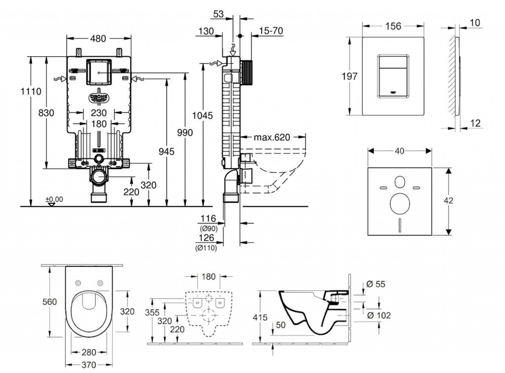 - predstenový inštalačný modul Grohe Uniset (38643001), splachovacie nádrž GD2