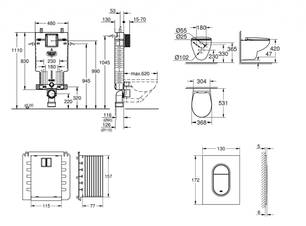 - pre vertikálne alebo horizontálne použitie splachovacích tlačidiel