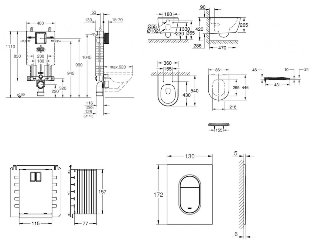 Kompletný WC set obsahuje