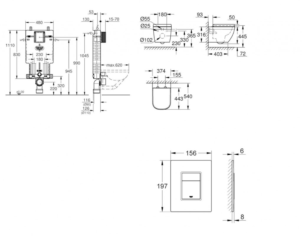 - pre vertikálne alebo horizontálne použitie splachovacích tlačidiel