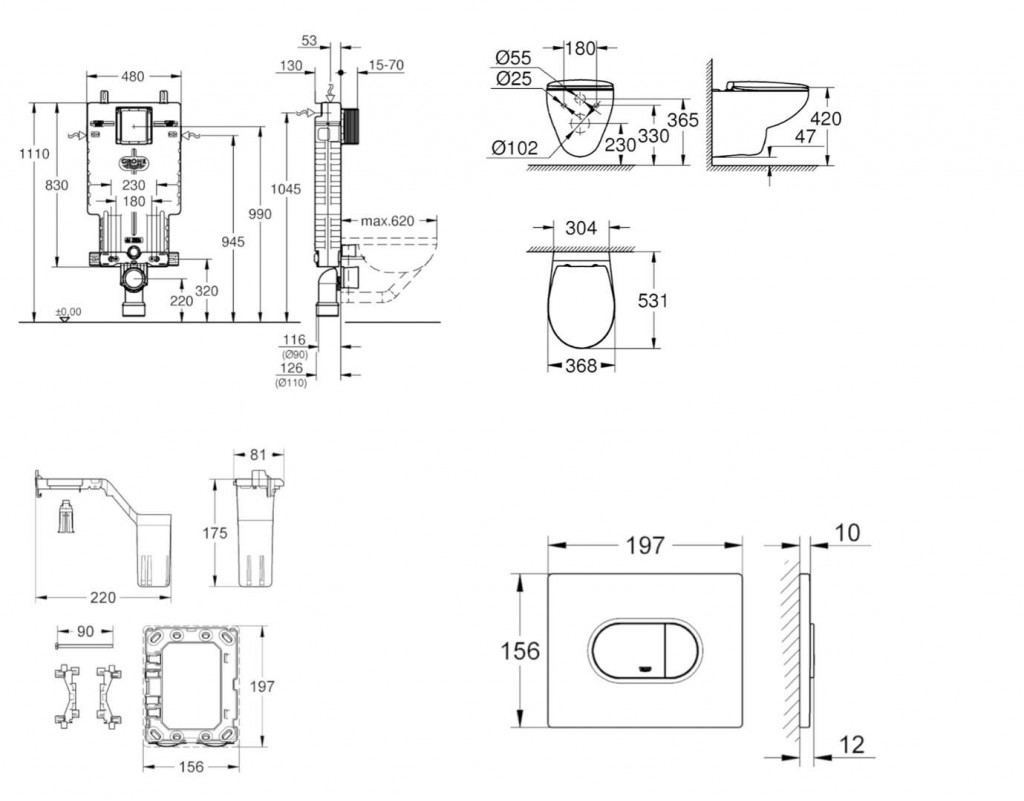 - pre všetky splachovacie tlačidlá GROHE s rozmermi 156 x 197 mm