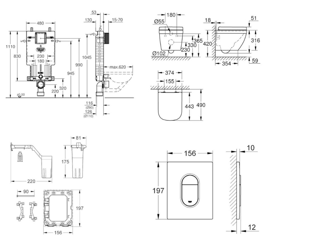 - pre všetky splachovacie tlačidlá GROHE s rozmermi 156 x 197 mm