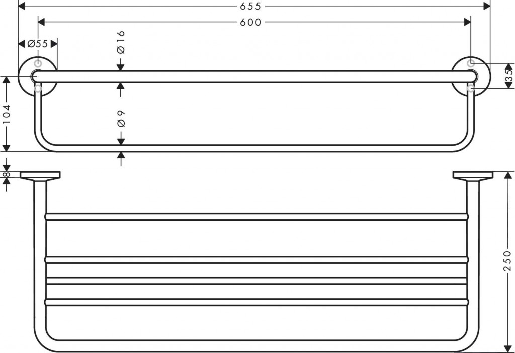 Polička vrátane držiaka na zavesenie uteráka