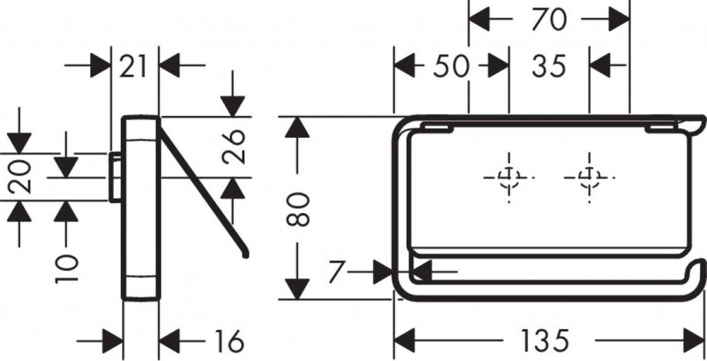 - možno kombinovať s miskou na mydlo / poličkou # 42803000 a poličkou 300 mm # 42838000 (prispôsobovací sada # 42870000 je nevyhnutná)