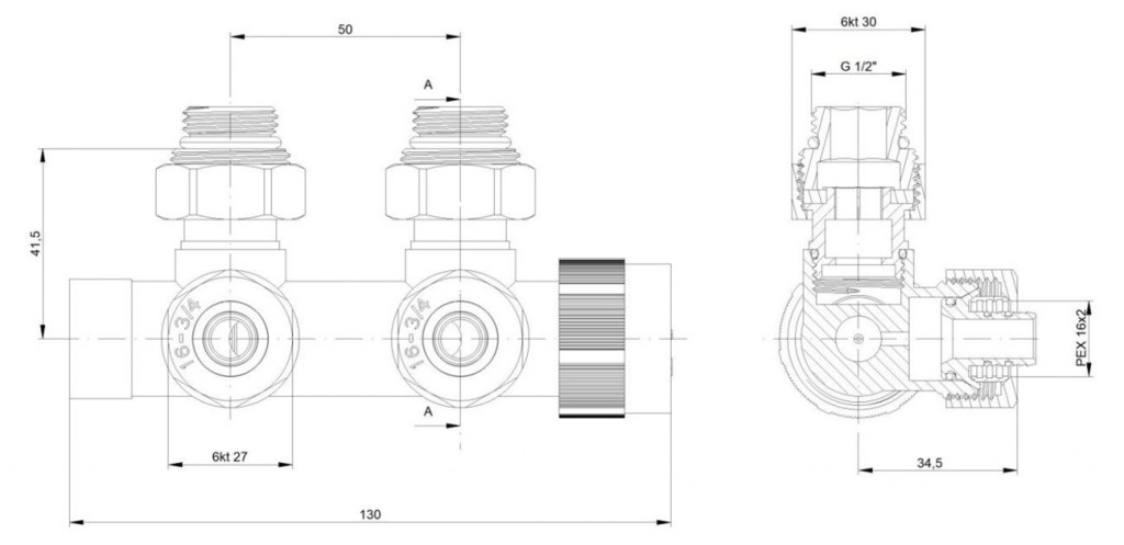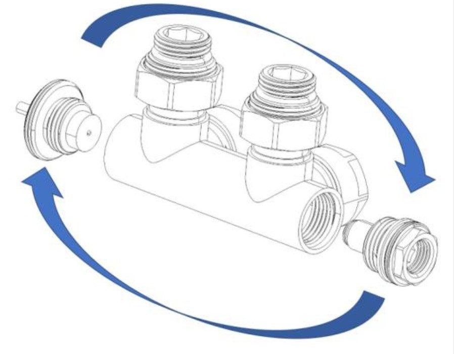 Ventil je určený na pripojenie radiátorov na rozvody TÚV s vývodom zo steny. Do ventilu nie je možné inštalovať do ventilu.