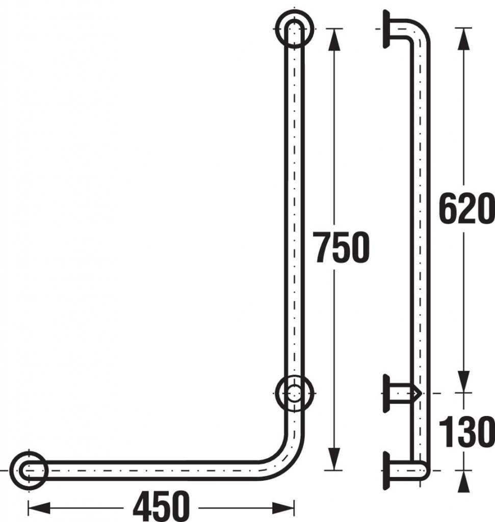 Pevné madlo do sprchy (ľavá varianta) s dĺžkou 750 mm patrí do príslušenstva pre kúpeľňu bez bariér Universum a je vyrobené z ušľachtilej leštenej nerezovej oceli.Madlo spĺňa vyhlášku č. 398/2009 Zb. O všeobecných technických požiadavkách zabezpečujúcich užívanie stavieb osobami s obmedzenou schopnosťou pohybu a orientácie, ktorá je platná od novembra 2009.