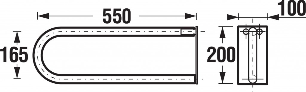 Sklopné toaletná madlo s dĺžkou 550 mm vhodné k umývadlám patrí do príslušenstva pre kúpeľňu bez bariér a je vyrobené z ušľachtilej leštenej nerezovej ocele.