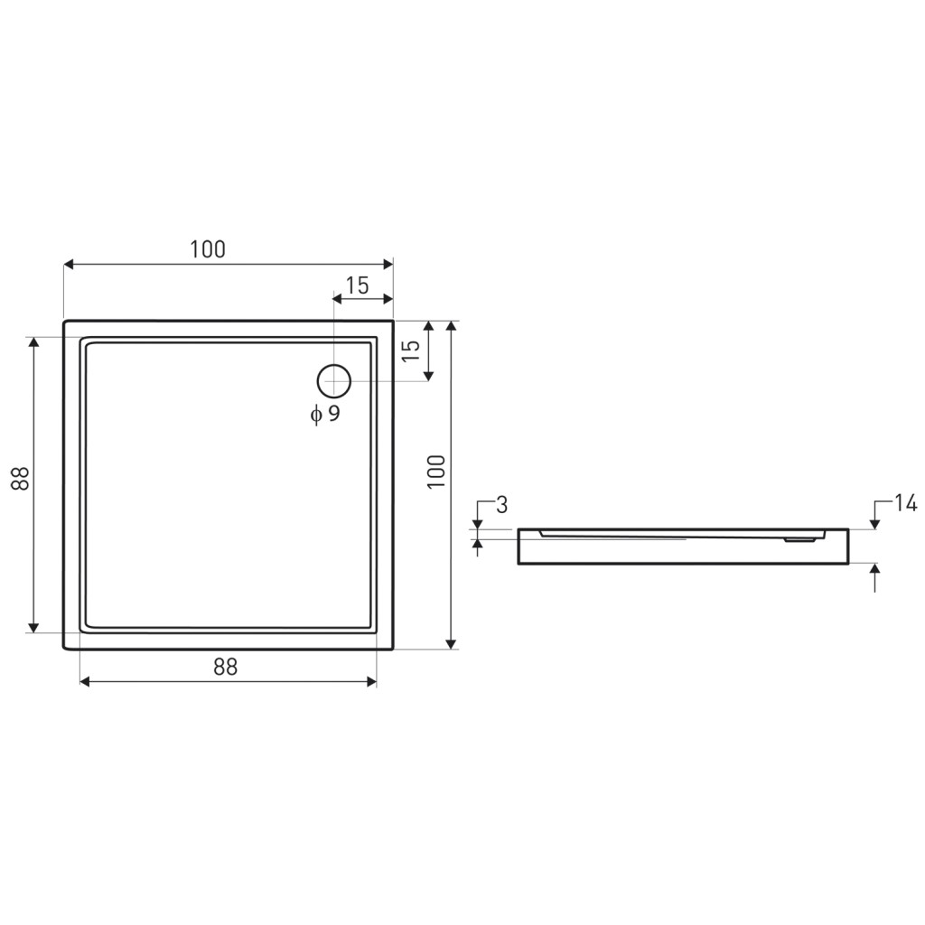 Univerzálna štvorcová sprchová vanička Victor 100x100 cm.