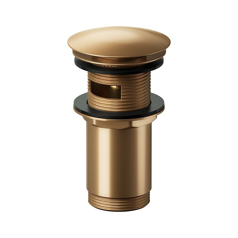 Táto univerzálna umývadlová zátka s automatickým mechanizmom CLICK-CLACK v kartáčovanej medi sa odporúča pre umývadlá s prepadom aj bez neho.