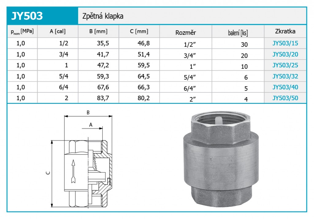 Univerzálny spätná klapka. Určené len na studenú vodu