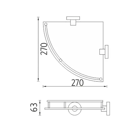 NIMCO Unix Polica rohová s ohrádkou chróm UN 13091RA-26 Polica rohová s ohrádkou v skle. Sklo matované. Polomer skla 25cm.