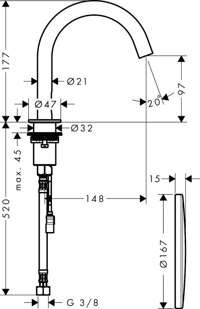 - výtok: 148 mm