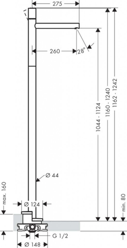 Páková umývadlová batéria do podlahy bez odtokovej súpravy