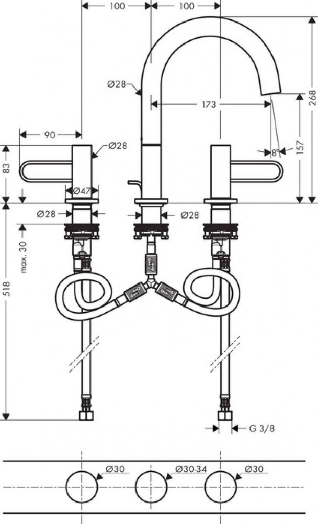 Trojotvorová umývadlová batéria