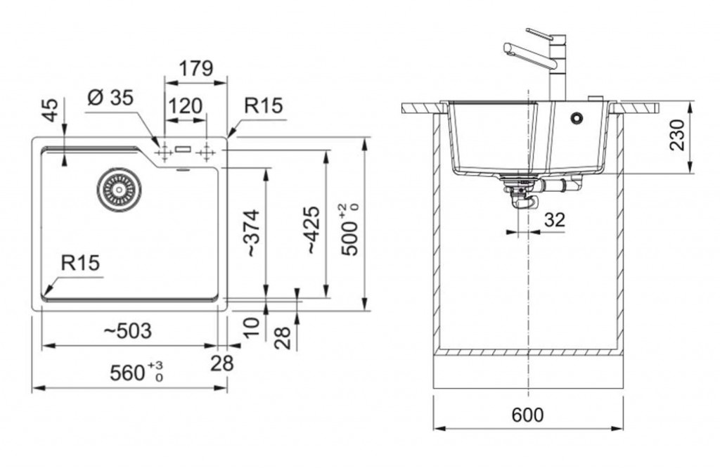 - rozmer výrezu 524 x 464 mm (rádius 15 mm)