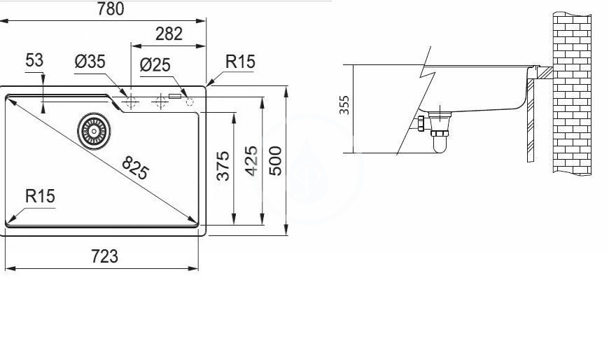 - cena zahŕňa: vymedzovací podložku pre montáž kuchynskej batérie, sitkový ventil 3 1/2 '' s prepadom, sifón pre úsporu miesta 6/4 '' s odbočkou na umývačku riadu, príchytky Fast-Fix na upevnenie drezu