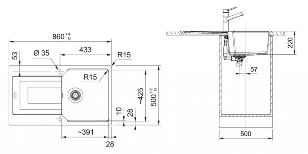 - rozmer výrezu 824 x 464 mm (rádius 15 mm)