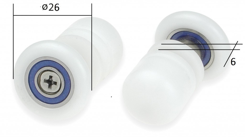 Vďaka kvalitným ložiskám, sa sprchové dvere po inštalácii ľahko posúvajú. Výrobca vám ponúka pojazdové, nylonové kolieska pre sprchové kúty so sklami s hrúbkou 6 mm . Valce majú priemer 25 mm . Vysoko kvalitné nylonové valčeky s guličkovými ložiskami - odpudzujúce vodu a nečistoty.