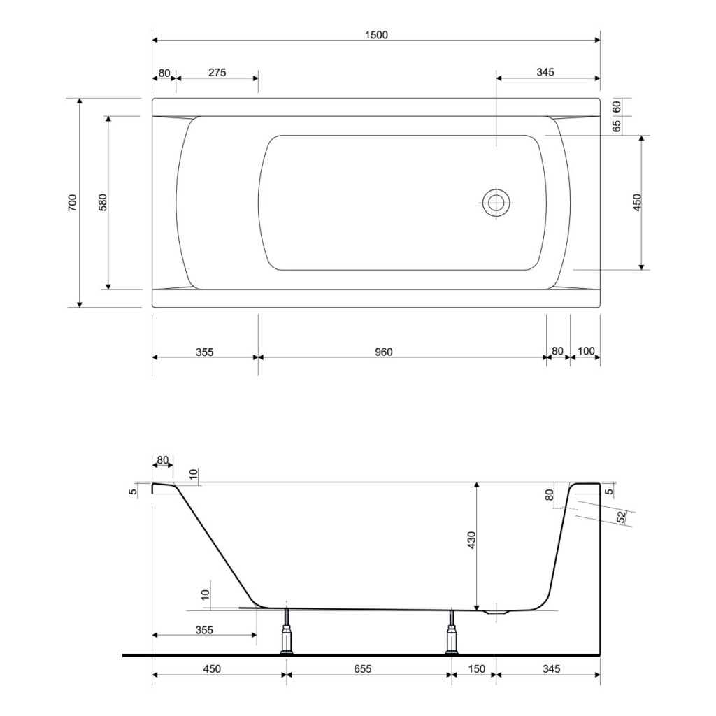 Moderné akrylátová vaňa Korat je dodávaná vrátane nastaviteľných nožičiek.