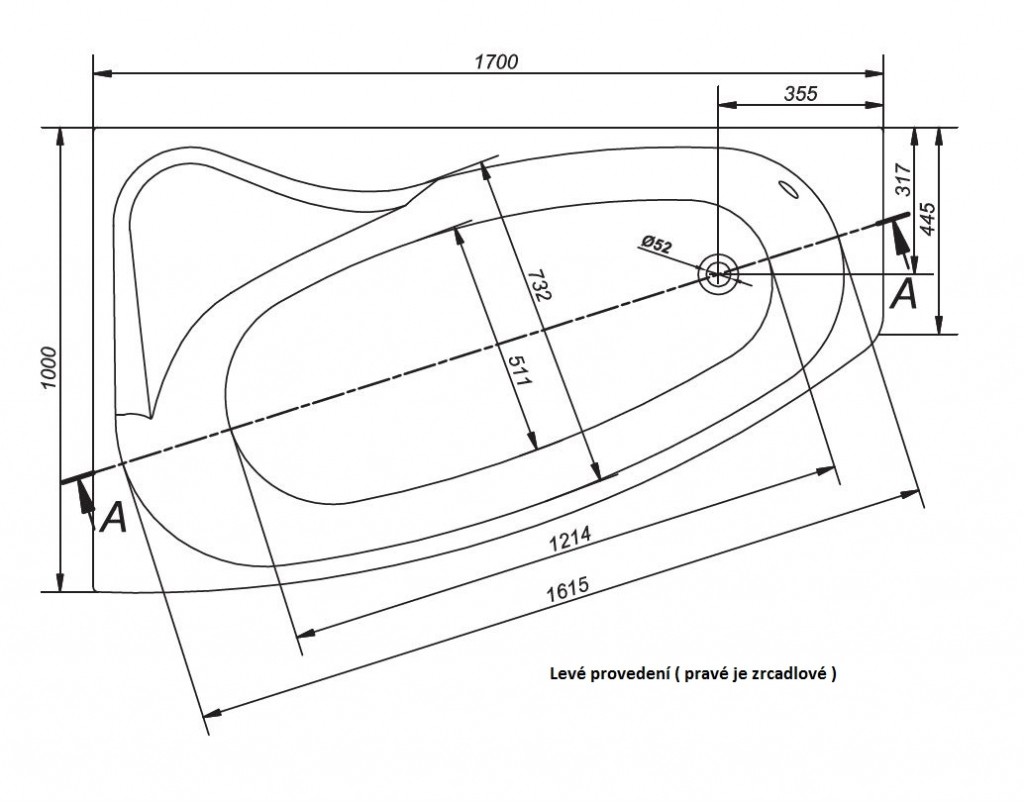 Asymetrická akrylátová vaňa SICILIA ľavá je dodávaná vrátane nastaviteľných nožičiek.